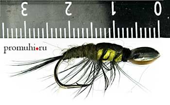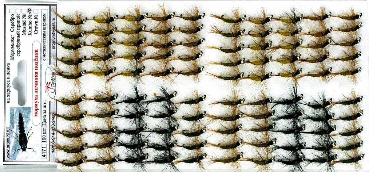 В течении всего лета, на небольших речках и озёрах, рыба часто питается только этими личинками подёнок, поэтому иметь эту муху на мормышке на рыбалке просто необходимо. Крючок: Kumho, размеры 8-14.