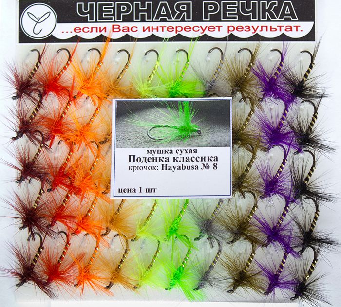 Совмещает концепции классической сухой мушки, призванной работать на нахлыстовом шнуре (наличие крылышек-маячков, хвостика и ершика), и сибирской приманки для ловли на поверхности (ершик сравнительно жесткий, хвостик уменьшенный с малым эффектом залипания к поверхности). Благодаря яркой окраске приманка хорошо видна рыбе как сбоку, так и на просвет. Рыболов тоже легко находит ее на воде.