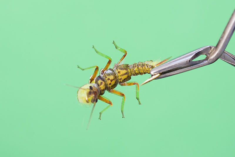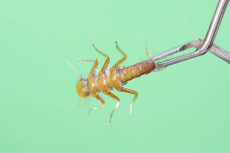 Трахейные жабры: даббинг шерстяной флюо, бородка пера страуса.