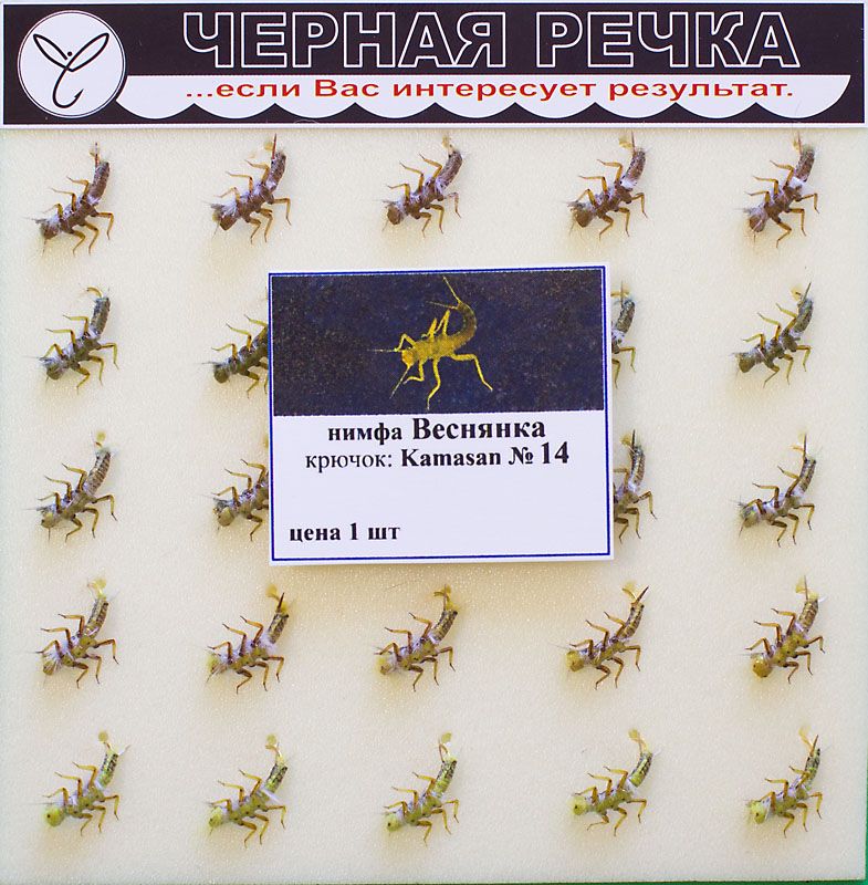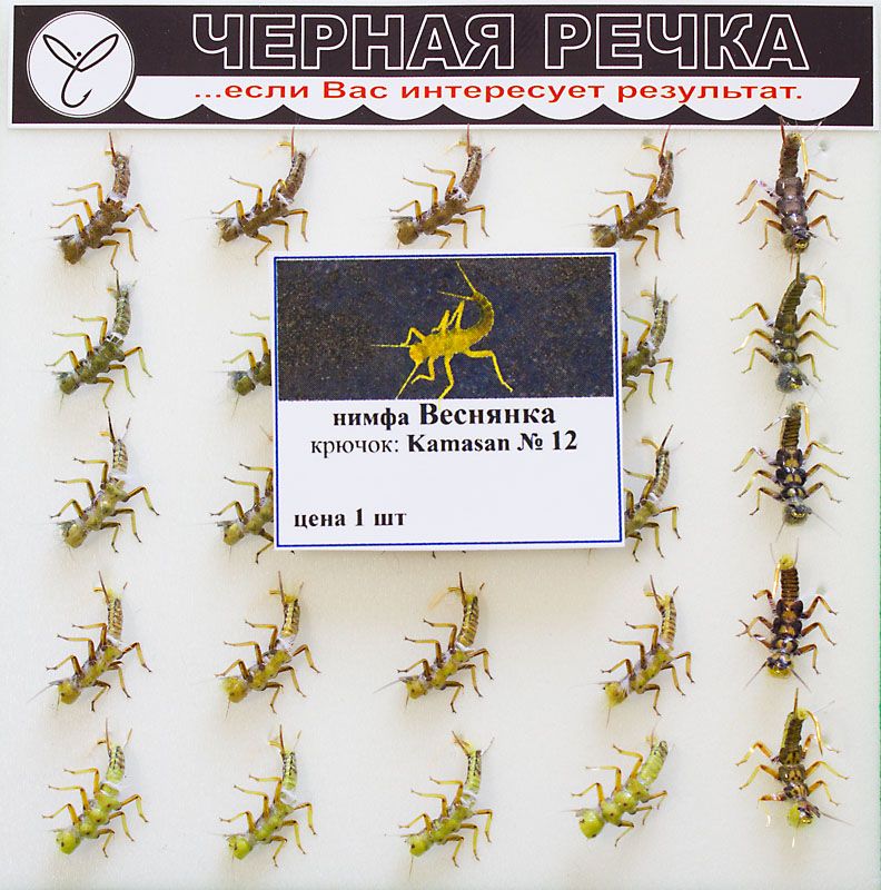 Нимфа Веснянка производится с 2017 года. Соответственно ее конструктив отражает технологические возможности предприятия на момент создания. По реалистичности силуэта и расцветки нимфы Веснянка и Веснянка голд превосходят как ранее созданные модели «Черной речки», так и все известные нам сегодня имитации личинок данного вида. Впрочем, искусство вязания мушек не стоит на месте. Мы, как и другие производители, уже работаем над новыми имитациями. Нимфа успешно применяется как в классическом нахлысте, так и на снастях сибирского типа. Нимфа Веснянка отличается от Веснянки голд отсутствием головки-утяжелителя. Вместо него применено внутреннее утяжеление свинцовой проволокой. Спортивным клубом «Рыболов» снят фильм «Нимфы Веснянка, Веснянка голд от «Черной речки» об изготовлении приманок и испытаниях их на водоеме.