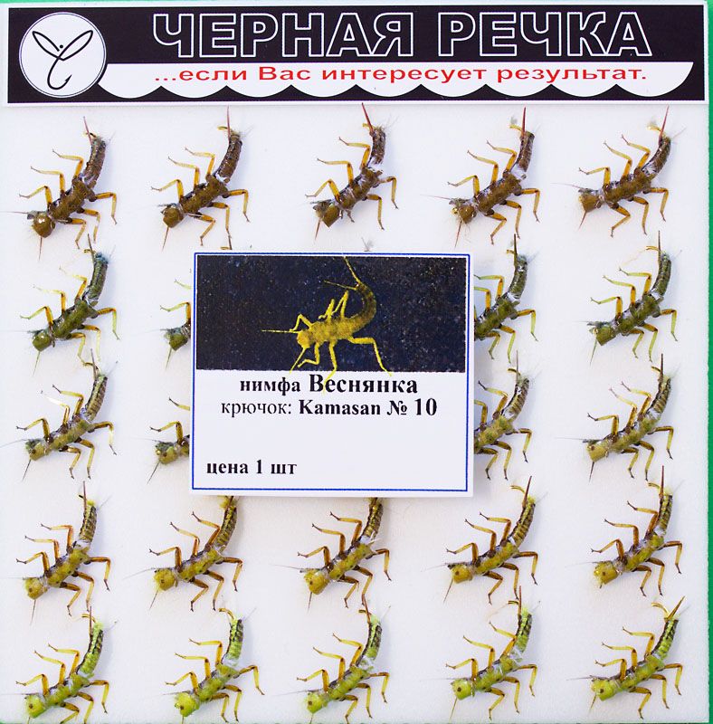 Нимфа Веснянка производится с 2017 года. Соответственно ее конструктив отражает технологические возможности предприятия на момент создания. По реалистичности силуэта и расцветки нимфы Веснянка и Веснянка голд превосходят как ранее созданные модели «Черной речки», так и все известные нам сегодня имитации личинок данного вида. Впрочем, искусство вязания мушек не стоит на месте. Мы, как и другие производители, уже работаем над новыми имитациями. Нимфа успешно применяется как в классическом нахлысте, так и на снастях сибирского типа. Нимфа Веснянка отличается от Веснянки голд отсутствием головки-утяжелителя. Вместо него применено внутреннее утяжеление свинцовой проволокой. Спортивным клубом «Рыболов» снят фильм «Нимфы Веснянка, Веснянка голд от «Черной речки» об изготовлении приманок и испытаниях их на водоеме.