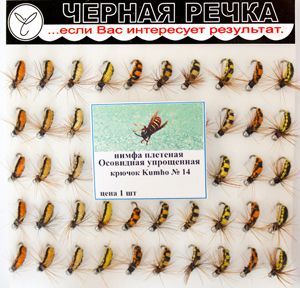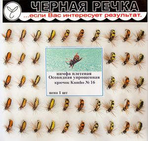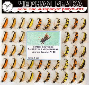 Плетеная мушка без применения микросинели, для рыболовов, предпочитающих достаточно гладкое тело приманки. За счет плетения создается уплощенный силуэт, характерный для большинства водных и прибрежных насекомых. Название нимфы объясняется появлением раньше нее нимфы Осовидная, которая вяжется с применением микросинели. «Упрощенность» приманки при этом не отражается на ее высокой уловистости. Цветовой ряд представлен сочетанием черного с желтыми и оранжевыми тонами разной интенсивности. Часть вариантов исполнена усложненным вариантом плетения, позволяющим создать полосатую окраску. Нимфа всесезонна. Варианты с ровной окраской лучше работают в конце весны — начале лета, с полосатой — с начала вылета слепней и ос до первого снега. Со льда лучше применять нимфы с включением оранжевой нити.