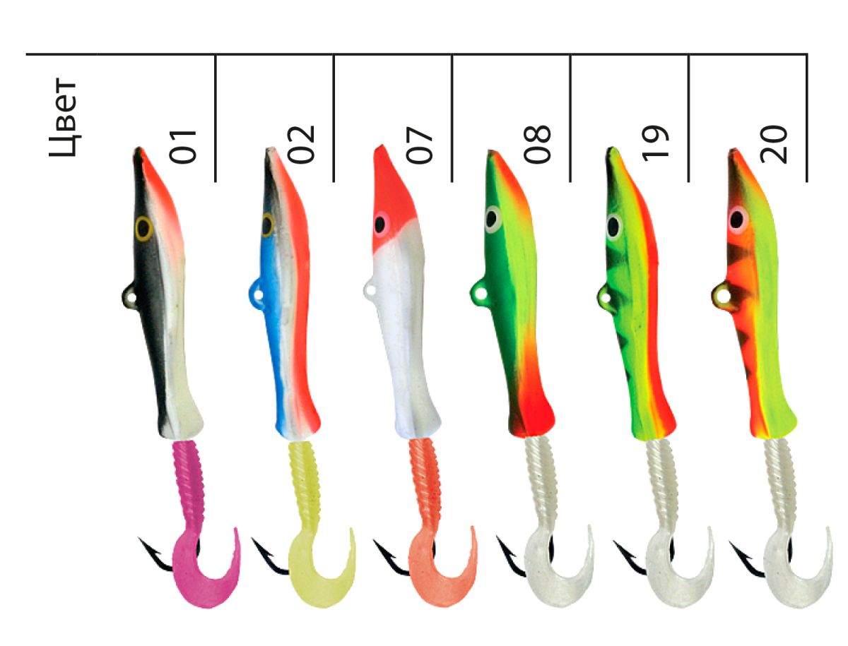 Девять различных топовых расцветок от спокойной «плотвиной», реалистичного или огненного окуня и до ярких, «кислотных» флуоресцентных для различных условий освещенности и прозрачности воды позволят Вам подобрать оптимальный вариант приманки для конкретных условий ловли.