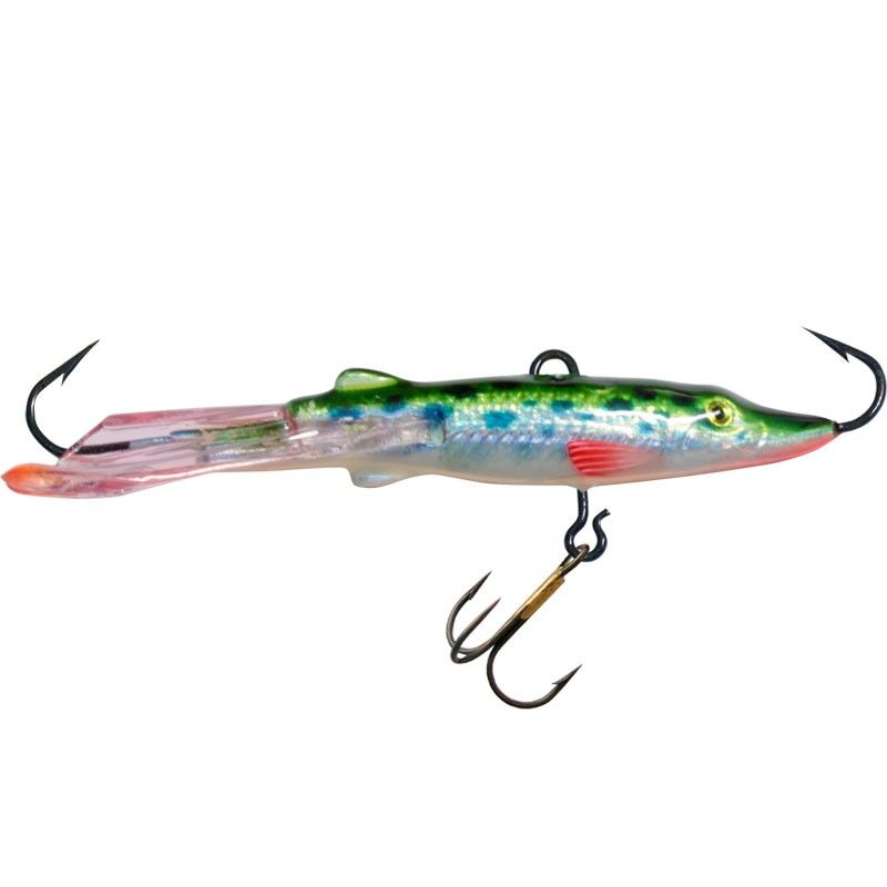 Зимний балансир «Щука-7». Балансиры, имитирующие форму и расцветку щуки, давно и на законном основании относятся к наиболее эффективным приманкам для ловли любой хищной рыбы, будь то окунь или судак, но главным предметом добычи становится сама щука (ведь, как известно - «зубастая» это жестокий и бескомпромиссный каннибал и тот факт, что приманки, имитирующие расцветку щуки и форму ее тела весьма эффективны в зимний или весенний период когда в период похолодания воды белая рыба уходит на глубину, беспечные щурята, оставаясь на местах своих летних стоянок, активно привлекают взрослого хищника. Крошки щурята, подросшие к моменту ледостава до размера 5-6 см., становятся излюбленным объектом охоты всех хищников обитающих в водоёме. До своей второй весны доживают 5 щурят из 1000. Им неведом страх, они не пытаются маскироваться в зарослях подводной растительности и никогда не скрываются от преследователей.