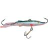 Зимний балансир «Щука-6». Балансиры, имитирующие форму и расцветку щуки, давно и на законном основании относятся к наиболее эффективным приманкам для ловли любой хищной рыбы, будь то окунь или судак, но главным предметом добычи становится сама щука (ведь, как известно -  «зубастая» это жестокий и бескомпромиссный каннибал и тот факт, что приманки, имитирующие расцветку щуки и форму ее тела весьма эффективны в зимний или весенний период когда в период похолодания воды белая рыба уходит на глубину, беспечные щурята, оставаясь на местах своих летних стоянок, активно привлекают взрослого хищника. Крошки щурята, подросшие к моменту ледостава до размера 5-6 см., становятся излюбленным объектом охоты всех хищников обитающих в водоёме. До своей второй весны доживают 5 щурят из 1000. Им неведом страх, они не пытаются маскироваться в зарослях подводной растительности и никогда не скрываются от преследователей.