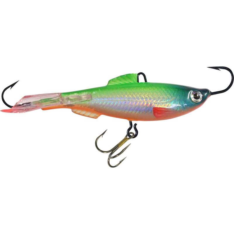 Тщательная, объемная прорисовка внешних деталей (глаз, жаберных крышек, боковых, спинных и анальных плавников), тончайшая чешуя со нанесением светоотражающей 3D голографической фольги или покраска стойкими флуоресцентными красками обеспечивает неповторимое сходство с живой рыбкой и делают балансир AQUA Тюлька ХХ более заметным при ловле на глубине подо льдом при малой степени освещенности или в мутной, темной воде.