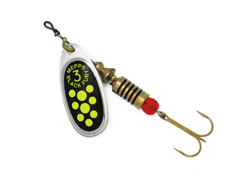 Среди всех моделей вращающихся блесен MEPPS одной из самых любимых у отечественных рыболовов считается Black Fury. Эта блесна может считаться универсальной, так как на нее можно с успехом ловить как истинных хищников, так и более мирных рыб.Благодаря форме лепестка, который имеет отклонение от оси порядка 45 градусов, приманка способна работать даже при незначительной скорости проводки. Эта блесна имеет нервное и прерывистое движение, которое идеально имитирует движение добычи, которая пытается спастись от хищника.Блесной с такой геометрией удобно рыбачить как на стоячих водоемах, так и на реках с незначительным течением.При вращении лепестка, благодаря цветным точкам наклеек и ее черной подложке, приманка напоминает крупное насекомое. Дополнительным привлекающим элементом служит красная бусинка, расположенная ниже сердечника.