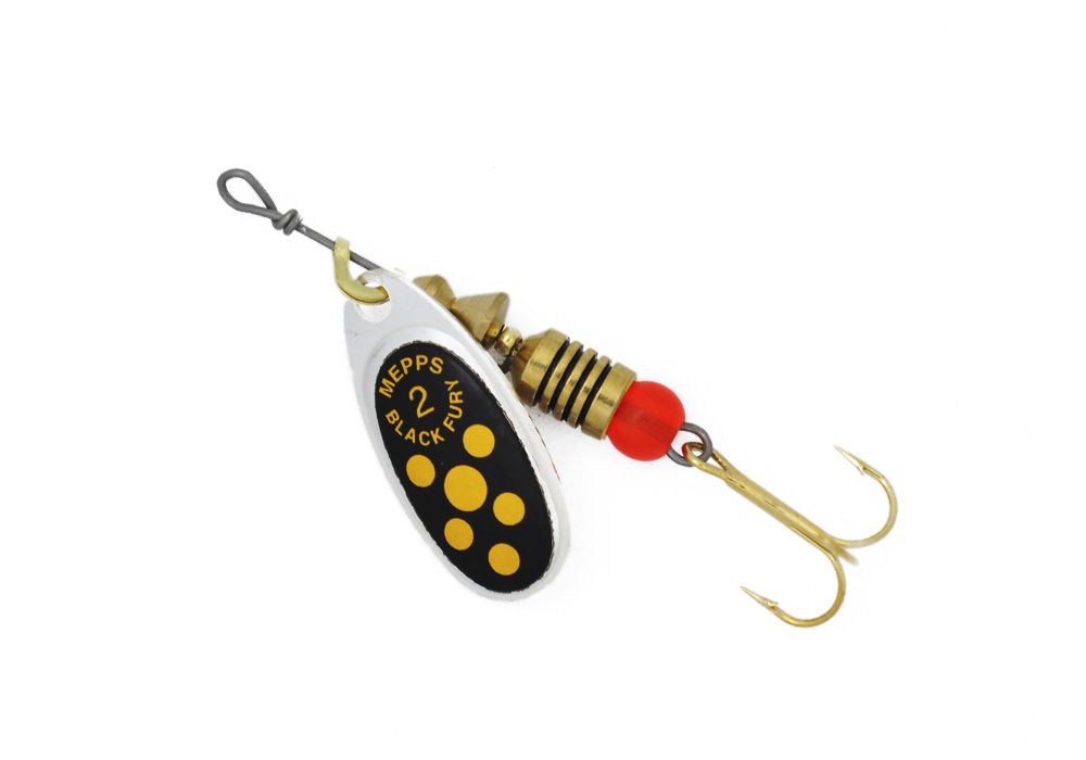 Среди всех моделей вращающихся блесен MEPPS одной из самых любимых у отечественных рыболовов считается Black Fury. Эта блесна может считаться универсальной, так как на нее можно с успехом ловить как истинных хищников, так и более мирных рыб.Благодаря форме лепестка, который имеет отклонение от оси порядка 45 градусов, приманка способна работать даже при незначительной скорости проводки. Эта блесна имеет нервное и прерывистое движение, которое идеально имитирует движение добычи, которая пытается спастись от хищника.Блесной с такой геометрией удобно рыбачить как на стоячих водоемах, так и на реках с незначительным течением.При вращении лепестка, благодаря цветным точкам наклеек и ее черной подложке, приманка напоминает крупное насекомое. Дополнительным привлекающим элементом служит красная бусинка, расположенная ниже сердечника.