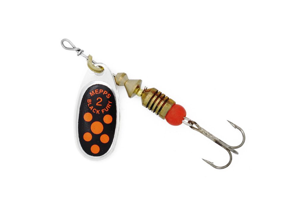 Среди всех моделей вращающихся блесен MEPPS одной из самых любимых у отечественных рыболовов считается Black Fury. Эта блесна может считаться универсальной, так как на нее можно с успехом ловить как истинных хищников, так и более мирных рыб.Благодаря форме лепестка, который имеет отклонение от оси порядка 45 градусов, приманка способна работать даже при незначительной скорости проводки. Эта блесна имеет нервное и прерывистое движение, которое идеально имитирует движение добычи, которая пытается спастись от хищника.Блесной с такой геометрией удобно рыбачить как на стоячих водоемах, так и на реках с незначительным течением.При вращении лепестка, благодаря цветным точкам наклеек и ее черной подложке, приманка напоминает крупное насекомое. Дополнительным привлекающим элементом служит красная бусинка, расположенная ниже сердечника.