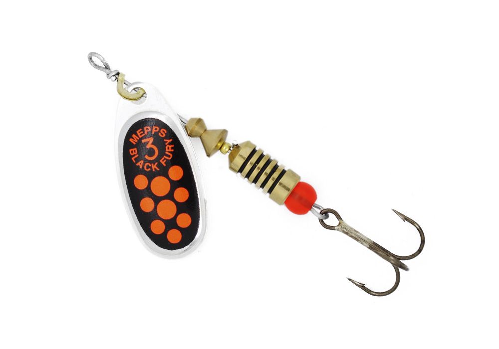 Среди всех моделей вращающихся блесен MEPPS одной из самых любимых у отечественных рыболовов считается Black Fury. Эта блесна может считаться универсальной, так как на нее можно с успехом ловить как истинных хищников, так и более мирных рыб.Благодаря форме лепестка, который имеет отклонение от оси порядка 45 градусов, приманка способна работать даже при незначительной скорости проводки. Эта блесна имеет нервное и прерывистое движение, которое идеально имитирует движение добычи, которая пытается спастись от хищника.Блесной с такой геометрией удобно рыбачить как на стоячих водоемах, так и на реках с незначительным течением.При вращении лепестка, благодаря цветным точкам наклеек и ее черной подложке, приманка напоминает крупное насекомое. Дополнительным привлекающим элементом служит красная бусинка, расположенная ниже сердечника.