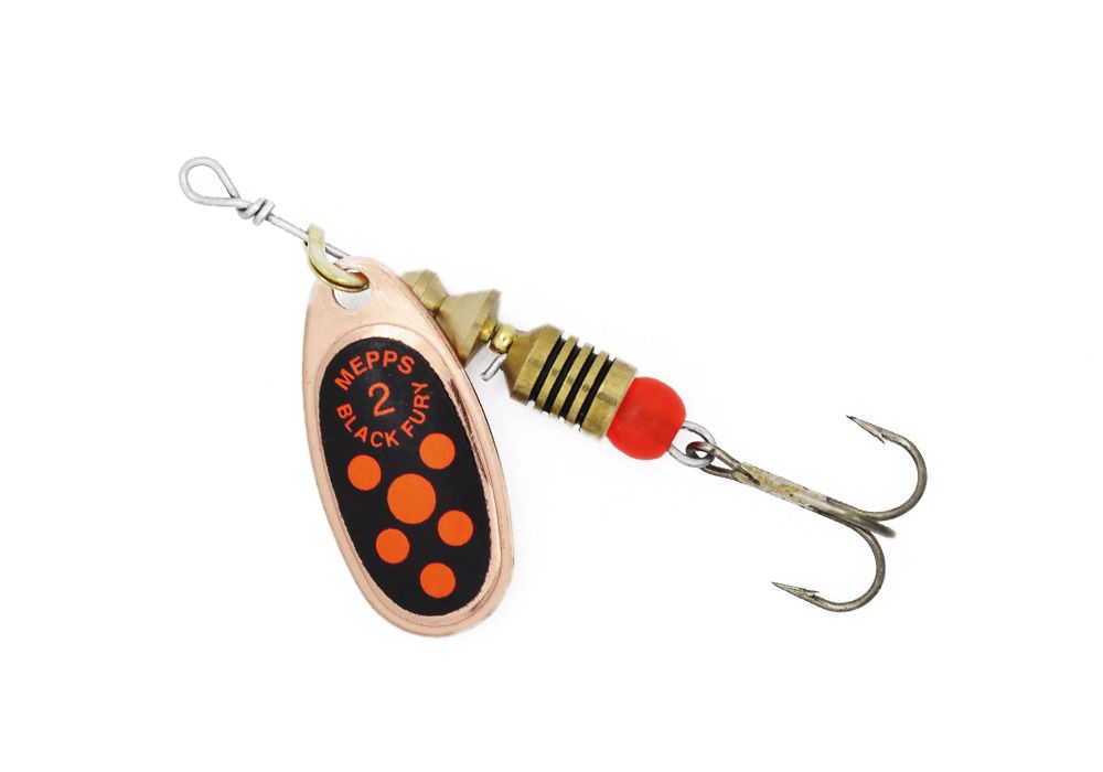 Среди всех моделей вращающихся блесен MEPPS одной из самых любимых у отечественных рыболовов считается Black Fury. Эта блесна может считаться универсальной, так как на нее можно с успехом ловить как истинных хищников, так и более мирных рыб.Благодаря форме лепестка, который имеет отклонение от оси порядка 45 градусов, приманка способна работать даже при незначительной скорости проводки. Эта блесна имеет нервное и прерывистое движение, которое идеально имитирует движение добычи, которая пытается спастись от хищника.Блесной с такой геометрией удобно рыбачить как на стоячих водоемах, так и на реках с незначительным течением.При вращении лепестка, благодаря цветным точкам наклеек и ее черной подложке, приманка напоминает крупное насекомое. Дополнительным привлекающим элементом служит красная бусинка, расположенная ниже сердечника.