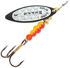 С момента появления Aglia Longue прошло немало лет, но конструкция приманки не претерпела существенных изменений. Сегодня эта модель - одна из самых пулярных. Название приманки обусловлено продолговатой формой лепестка, имеющего отклонение от оси вращения 30 градусов и небольшое лобовое сопротивление. Справедливости ради, следует отметить, что оно несколько изменяется, в зависимости от скорости проводки. Именно эта особенность, то есть очень широкий диапазон допустимой скорости движения, при которой сохраняется безукоризненная работа блесны, и есть главный секрет Aglia Longue. Благодаря небольшой упористости блесны всех размеров пригодны для ловли с проводкой против течения. В то же время и на озере, где часто требуется медленное движение блесны, Aglia Longue обеспечит вам превосходную рыбалку. Благодаря форме лепестка и более тяжелому весу, блесна хорошо держит медленное и стабильное вращение на самых сильных течениях. Рекомендуются для плотных потоков, быстрой и глубокой воды, а также для ловли против течения. Характеристики: