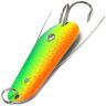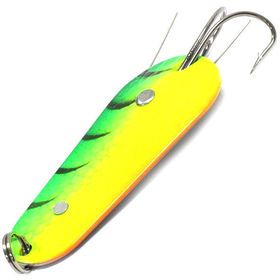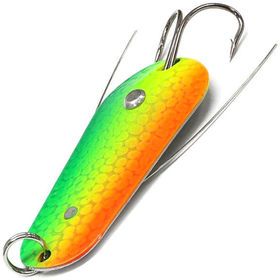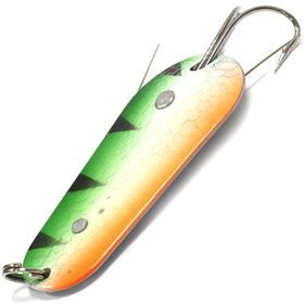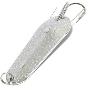 Одна из колеблющихся блесен Namazu - SILVERMOON.Модель является незацепляйкой, поэтому ловить на нее можно в заросших участках акватории. Стабильная энергичная игра этой приманки привлекает внимание хищной рыбы, так как имитирует движения настоящей рыбы. Рифление пластины выполнено в виде чешуи. Для оснащения применяется двойной крючок. Это снижает риск зацепа, но при этом повышает шансы рыболова на успешную подсечку по сравнению с одинарным крючком. Весит представленная модель 18гр. при длине в 6,7см. Покрытие может быть выполнено в золотистом, серебристом цвете, либо с имитацией окраса рыбы.