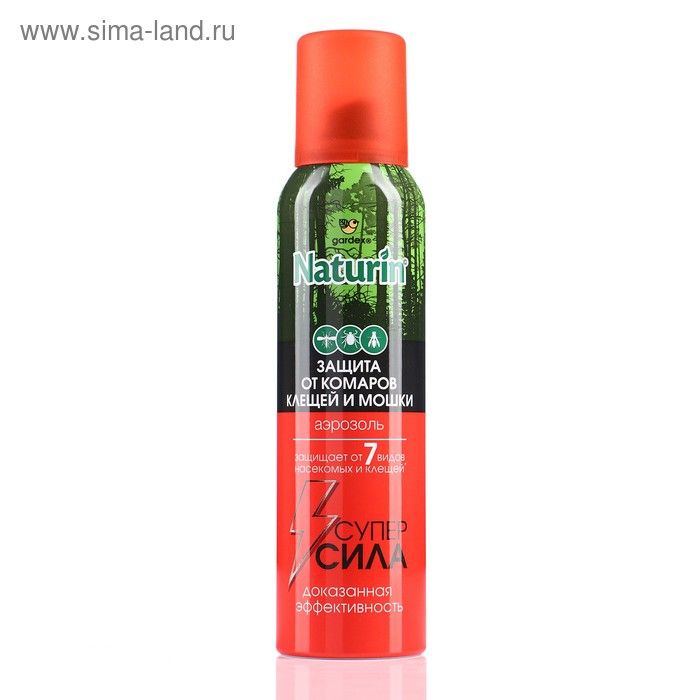 Аэрозоль от комаров, клещей и мошек "Gardex Naturin", Супер Сила, 3 в 1 - современное репеллентное средство для защиты от кровососущих насекомых (комаров, мокрецов, мошек, москитов, слепней, блох, таежных и лесных клещей). Можно наносить на кожу и на одежду.