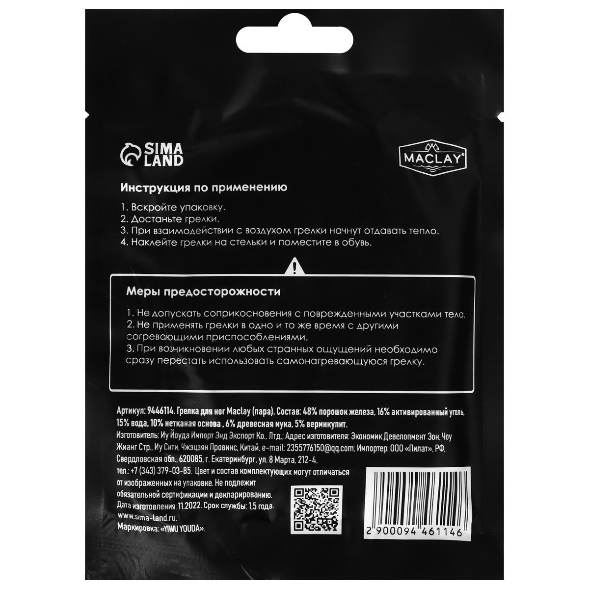 Рекомендации: не прикладывать непосредственно к коже; не прикладывать на гематомы, опухоли, на обмороженные места с пониженной чувствительностью; перестать использовать, если станет горячо или некомфортно; не использовать во время сна; не использовать вблизи от обогревателей и любых обогревающих устройств; в случае разрыва пакета избегать попадания порошка в глаза.
