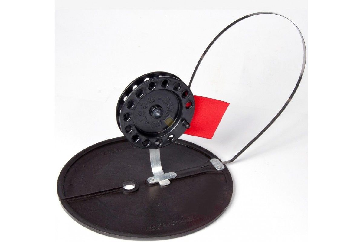 Жерлица предназначенная для ловли судака, щуки,а также другой хищной рыбы для подледного лова. Жерлица на подставке состоит из пластикового основания, стойки с катушкой и флажка, сигнализирующего о поклевке. Основание модели, служащее для затемнения лунки, снабжено прорезью, в которую заводится леска.Для того чтобы предотвратить замерзание лунки, достаточно присыпать основание жерлицы снегом. В сложенном состоянии жерлица довольно компактна. Диаметр катушки - 90мм. Неоснащенная.