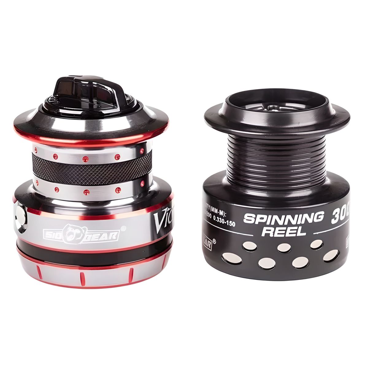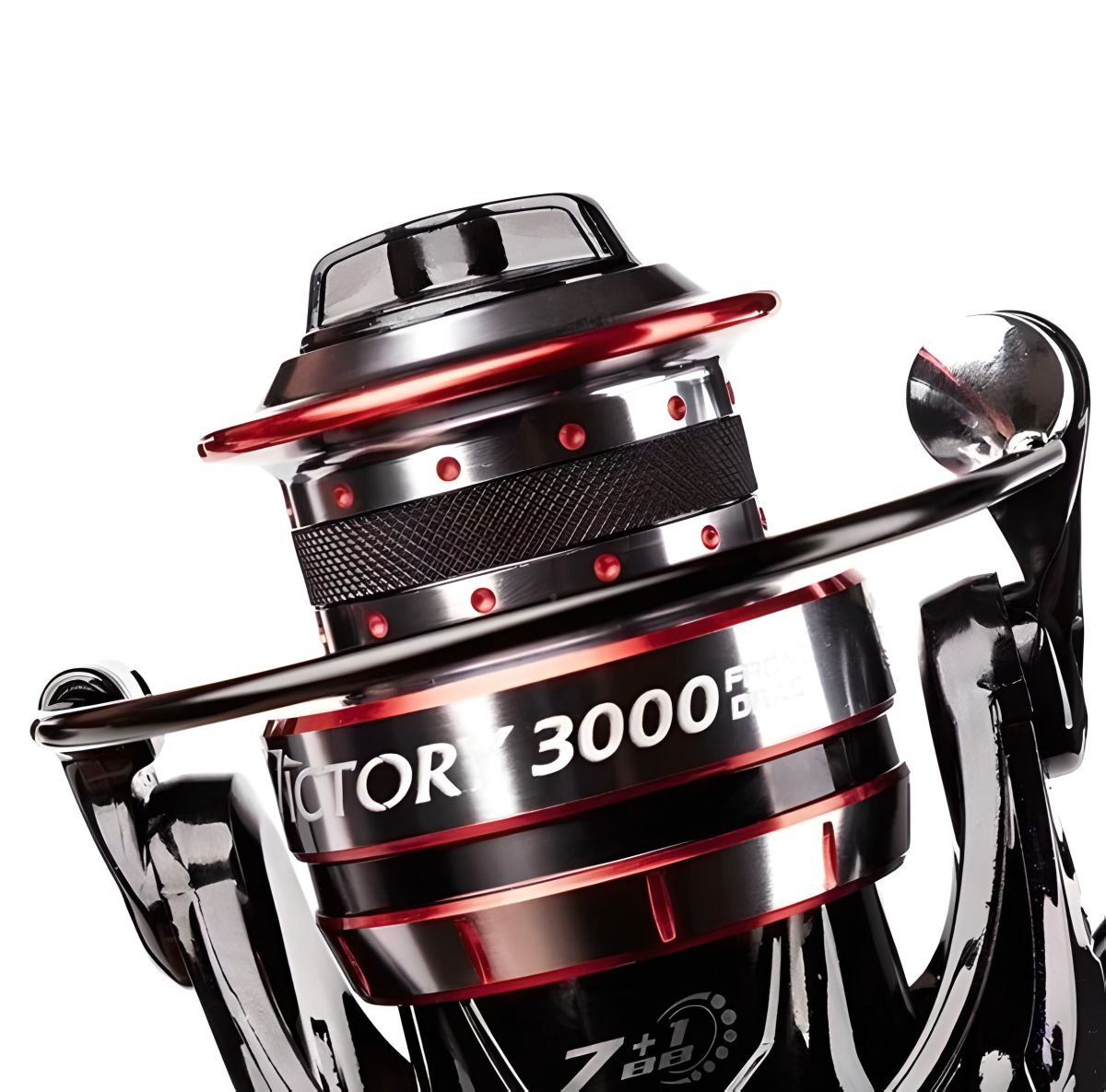 Катушки линейки Victory относятся к начальному уровню, являясь при этом качественным и функциональным изделием. Главная пара катушек изготовлена с применением прецизионной обработки и оснащена надёжной передачей с ведомой шестернёй из бронзы. Такой механизм обладает плавным ходом и значительным запасом прочности. А также плавность хода в данной модели обеспечивают 7 подшипников. Плавность вращения ротора и работа мгновенного стопора обратного хода обеспечивается роликовым подшипником и компьютерной балансировкой. Облегчённый корпус катушки изготовлен из прочного композитного материала. Ручка изготовлены из алюминия. Шпуля изготовлена из алюминия и имеет металлическую подпружининную клипсу для фиксации лески. Дужка лесоукладывателя имеет полую конструкцию. Комплектуются запасной графитовой шпулей и чехлом.