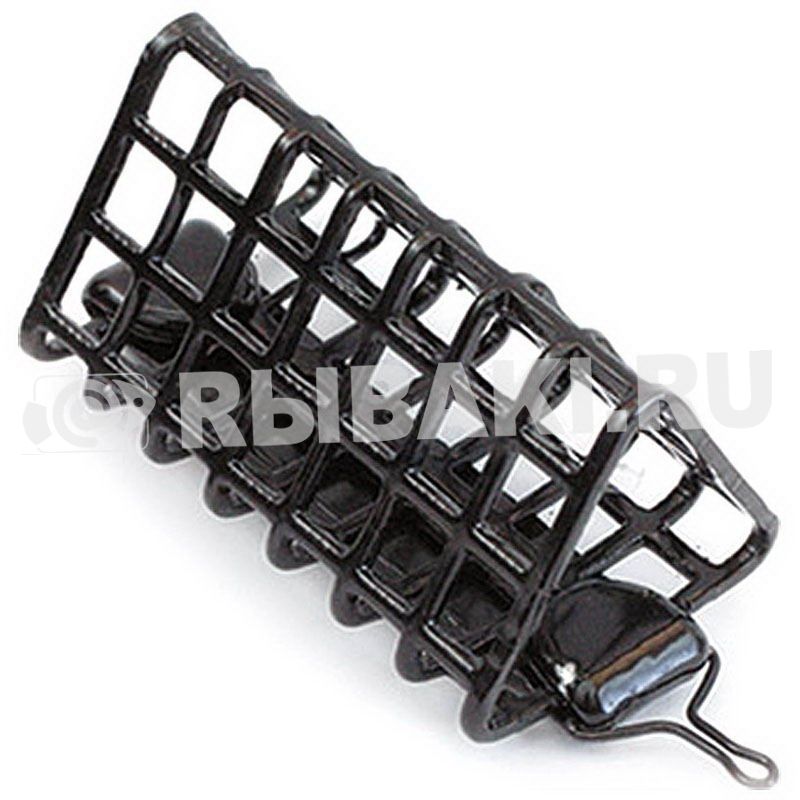 Кормушка фидерная выполнена из толстой металлической сетки, что позволяет избежать деформации кормушки в процессе ловли.