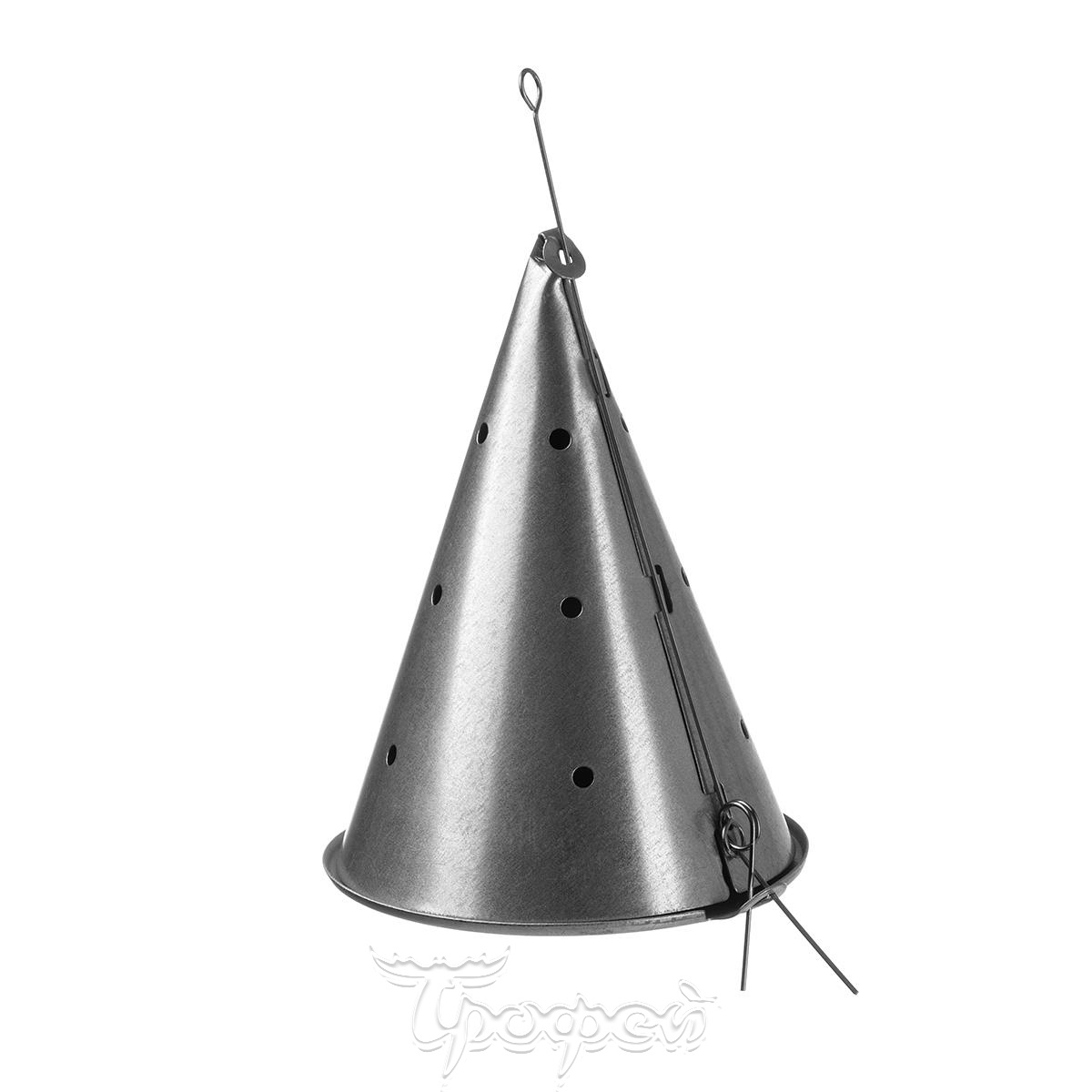 Кормушка зимняя самосвал, наиболее популярна и широко используемая среди рыболов. Этот вид кормушки эффективно работает при любых условиях. Им можно формировать холмики из прикормки непосредственно на дне или создавать прикормочное облако поблизости от рабочей лунки. Эффектина работает и на течении, и в стоячей воде. Принцип работы кормушки самосвала очень простой. Внутрь помещается прикормка нужной консистенции. При помощи защелки дно закрывается. Кормушка на отдельном шнуре опускается на необходимую глубину и резким рывком за конец шнура открывается. Прикормка вываливается из нее и ложится на дно. Качественно сделанная защелка уверенно удерживает крышку до момента рывка, работает практически бесшумно. Материал: Металл Высота: 9,5 см Диаметр: 7 см