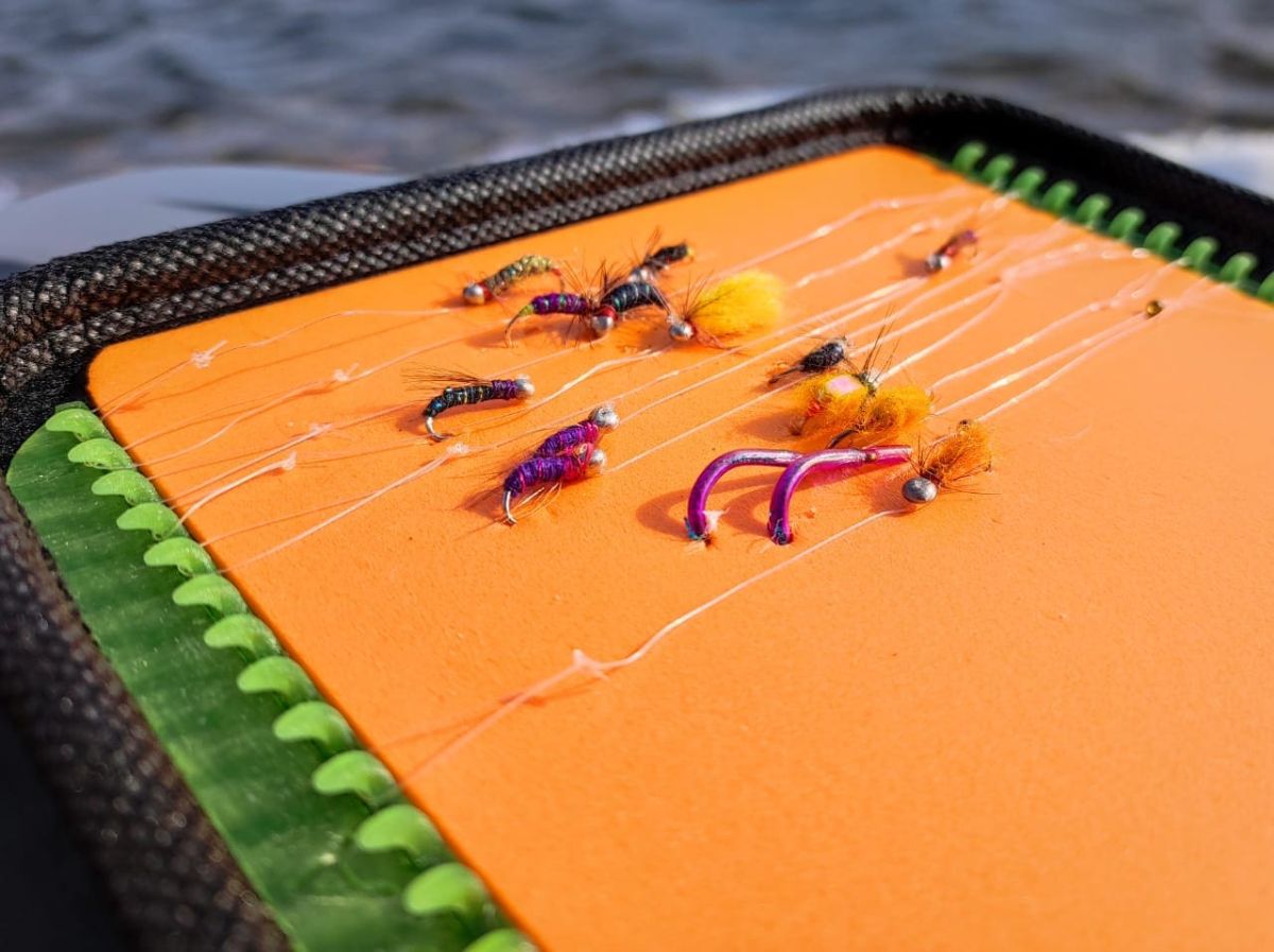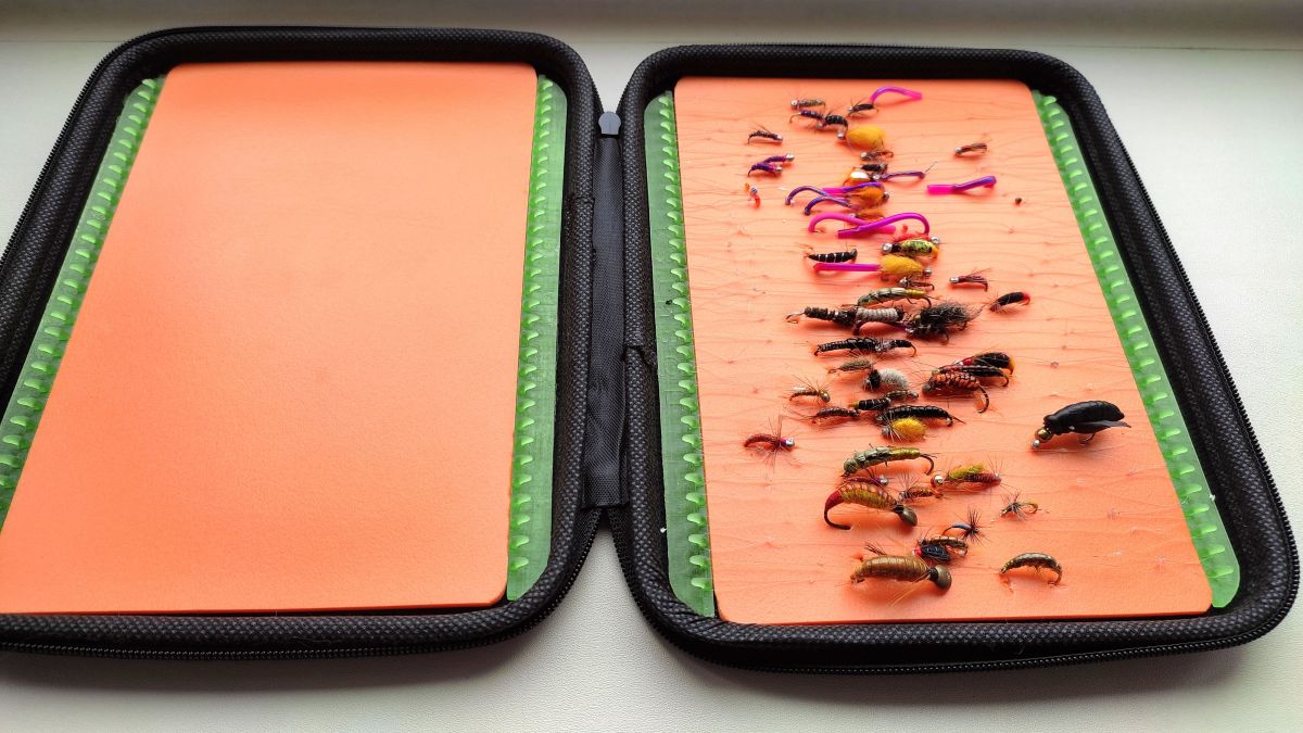 Коробочки под мухи с крючками для поводков. Сделаны из мягкого и неубиваемого материала, очень легкие, имеют положительную плавучесть, закрываются на молнию, представлены в трех размерах