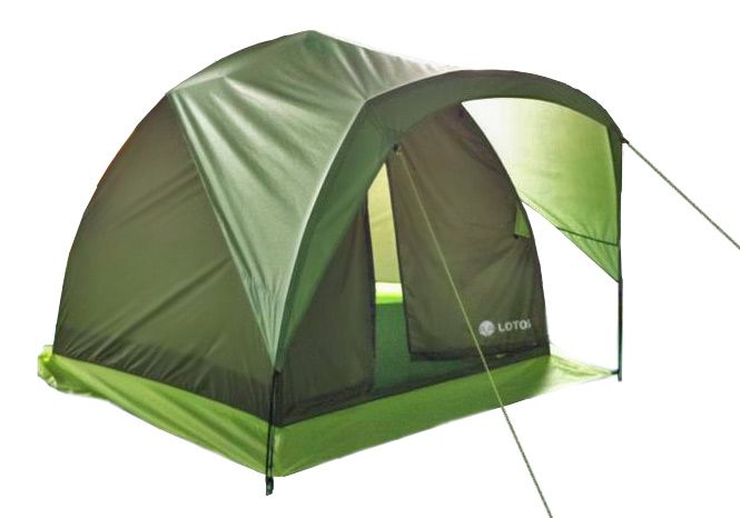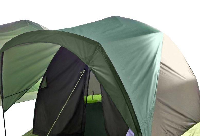 Накиньте тент козырька на палатку так, чтобы арка козырька располагалась перед входом в палатку. Закрепите его специальными карабинами к петлям растяжек на палатке (рис 2).