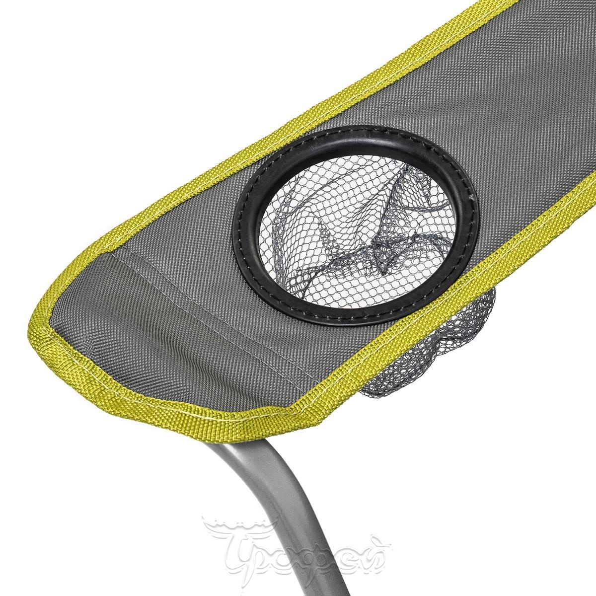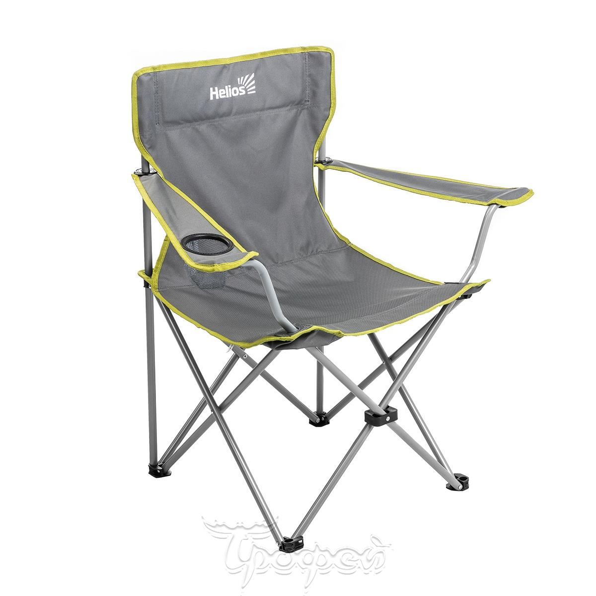Кресло складное Helios (арт.HS-242-G) - небольшое складное кресло со спинкой и тканевыми подлокотниками станет незаменимым предметом на отдыхе, на природе, рыбалке, даче. В подлокотнике имеется подставка для напитков. В сложенном виде кресло занимает очень мало места.