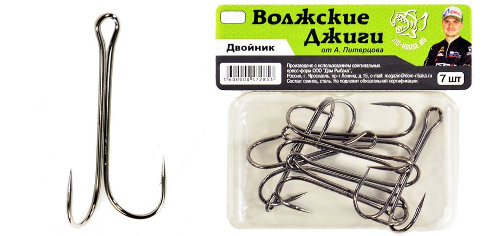Данный вид крючка для рыбной ловли наиболее популярен среди любителей джиговой ловли. Несмотря на то, что крючки имеют достаточно простую конструкцию, именно благодаря ей они представляют наибольшую важность для любой спиннинговой оснастки. Двойники просто незаменимы при оснащении джиговых приманок — твистеров, виброхвостов и других приманок, так как при ловле на джиг приманка очень часто контактирует с дном.