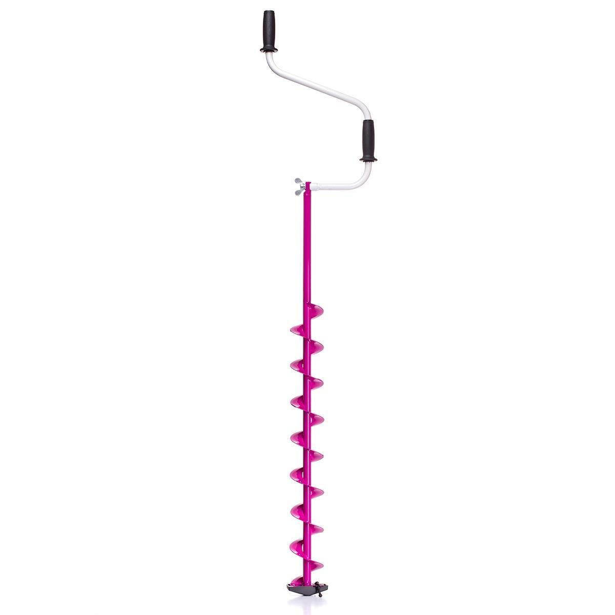 Верхняя рукоятка ледобура смещена относительно оси ледобура на 105 мм, а нижняя на 165 мм. Такое расположение рукояток позволяет вращать ледобур одновременно двумя руками, тем самым увеличивая скорость бурения лунок во льду.
