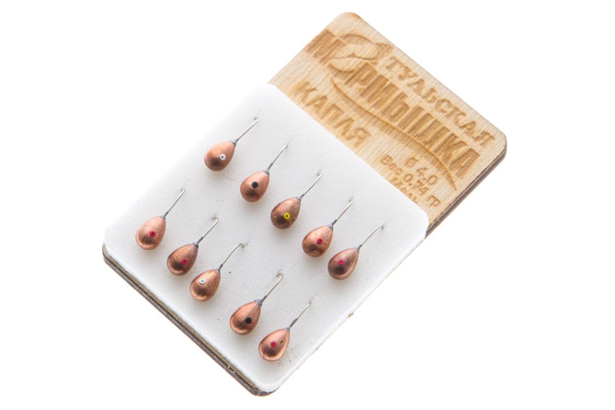 Самая распространённая, как у рыболовов-любителей, так и у спортсменов мормышка «Капля» выпускается в размерах от 0,74 гр. и более. Изготавливается из вольфрама с отверстием в центре в который вставлен кембрик для исключения перетирания лески о металл. Материал приманки, это довольно крепкий, с долгим сроком эксплуатации, метал, который не влияет на химический состав воды, а значит и не отпугивает рыбу. Основные цвета серебро (вольфрам), медь, и «черное золото».