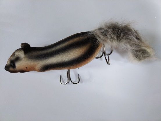 Тело приманки изготовлено из вспененного полистирола. Расположенный внутри стальной каркас, огруженный стальными утяжелителями, обеспечивает защиту от ударов о камни и острых зубов хищников. Покрытие изготовлено из искусственного меха и придает максимальную реалистичность приманке. Длина - 12см. Вес - 50гр.