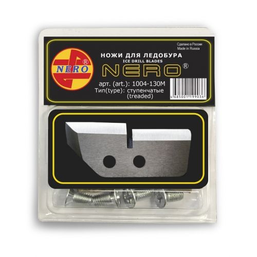 Ножи NERO ступенчатые 1004-130 подходят к отечественным ледобурам для шнеков диаметром 130мм. левого вращения. Предназначены для сухого, промороженного льда. Изготовлены из стали сплава 65Г и нержавеющей стали 40Х13. Наиболее эффективны при работе с родными ледобурами.