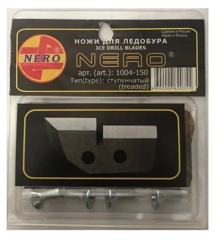 Ножи NERO ступенчатые 1004-150 подходят к отечественным ледобурам для шнеков диаметром 150мм. левого вращения. Предназначены для сухого, промороженного льда. Изготовлены из стали сплава 65Г и нержавеющей стали 40Х13. Наиболее эффективны при работе с родными ледобурами.