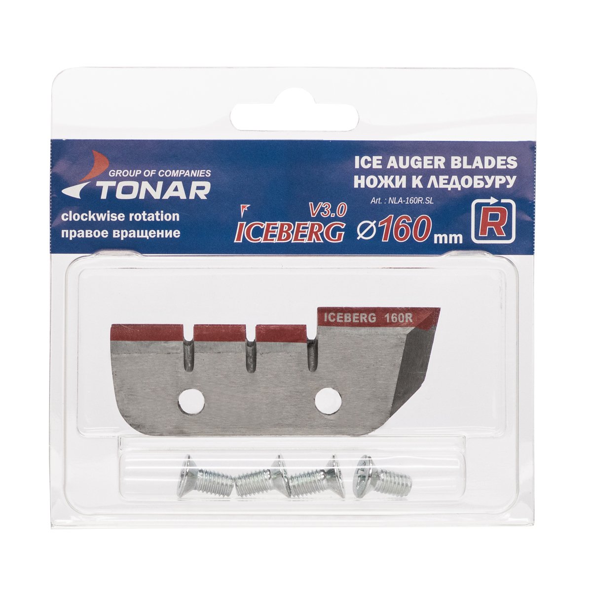 Ножи к ледобуру ICEBERG 160R v3.0 - диаметр бурения 160 мм, правое вращение. Материал для изготовления ножей - высокоуглеродистая легированная сталь. Высокая твердость - 57-62 HRC. В комплекте с ножами идут 4 крепёжных болта. Дополнительная финишная шлифовка лезвия делает ножи идеально острыми, позволяет держать заточку намного дольше.Лезвие ножей обрабатывается специальным защитным антикоррозионным составом.
