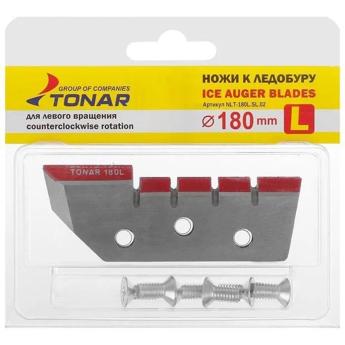 На ледобуры диаметром бурения 180 мм и левым вращением, выпущенных до 2019 года, устанавливаются устанавливаются сразу четыре ножа.Ножи изготовлены из высокоуглеродной легированной стали. После закалки ножи имеют твердость 57-62 HRC, что позволяет многократно перетачивать ножи без ухудшения их первоначальных свойств.Характеристики: