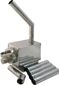 В стандартный комплект входят:Трубы прямые 5шт*33см, Труба угловая 45 град х 2шт, Сумка-чехол, Ножки, Металлическая разделка установки в палатку.