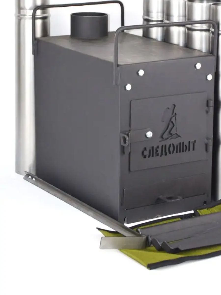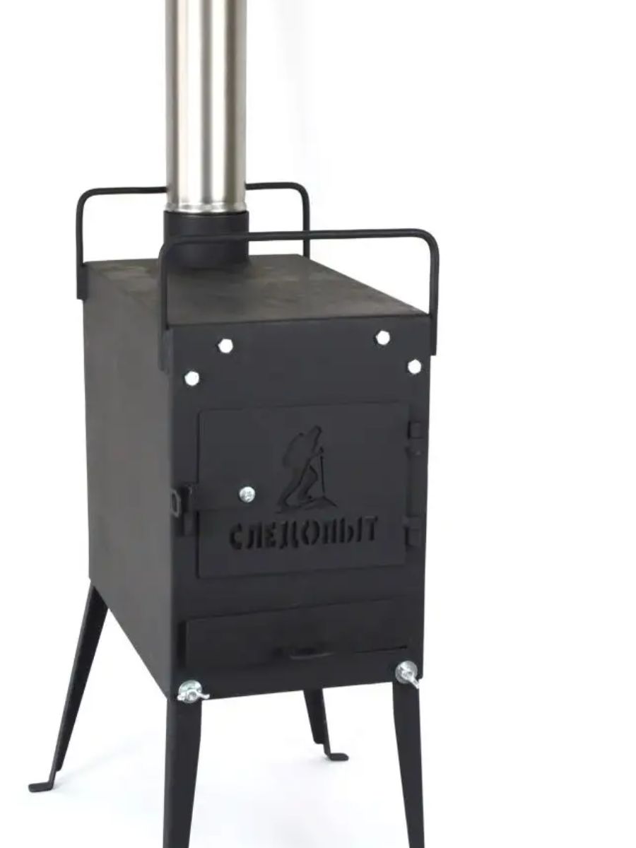 Печь походная дровяная Следопыт малая предназначена для отопления палаток на рыбалке или охоте в любое время года. Печь топится дровами или топливными брикетами. Может использоваться в качестве баньки, что позволит вам кемпинговать в любых условиях и париться во время ночевки на природе. Печь отличается высокой надежностью и долговечностью, поэтому вы можете быть уверены в ее качестве. Изготовлена из стального листа, толщиной 2 мм, окрашенного термостойкой краской черного цвета. Дымоход изготовлен из стального листа толщиной 0,5 мм. Печь оборудована съемными ножками с "барашковым" механизмом, выдвижным зольником. Диаметр дымохода 7 см. Длина секции трубы 37 см. Материал печи - сталь 2 мм, поддувало - сталь 1,5 мм, дымоотвод - сталь 0,5 мм. Комплектация: печь дровяная - 1 шт, труба прямая - 5 шт, ножка - 4 шт, кочерга - 1 шт, чехол для ножек - 1 шт, сумка-чехол - 1 шт.