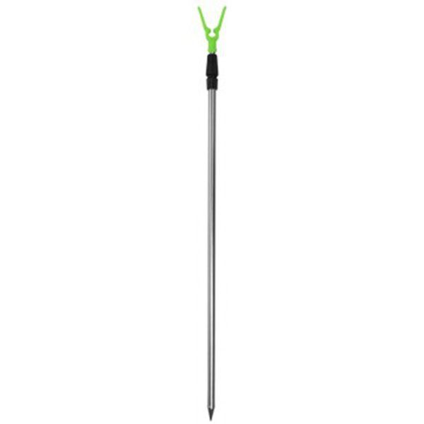 Подставка выполнена из алюминия и оборудована пластиковым держателем для удилища. Замок винтового типа позволяет отрегулировать подставку под нужную длину.