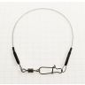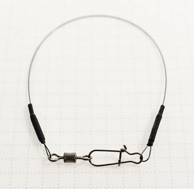 Поводок изготовлен из титанового сплава, оснащён вертлюгом и удобной застёжкой. Титан — превосходно противостоит острым зубам хищника, защищая основную леску.Титановый поводок отличается от остальных металлических поводков своей мягкостью и отсутствием памяти. Титановый поводок также имеет меньший удельный вес, что положительно сказывается на игре приманок. Длина поводков 15см., 20см., 25см. Тестовая нагрузка от 12 до 18кг.