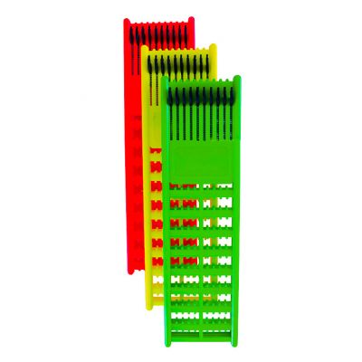 Особенностью данной поводочницы является наличие пружин, которые обеспечивают удобное хранение поводков любой длины.Благодаря механизму сжатия и разжатия пружин, поводки всегда будут в натянутом положении, и не будут соскальзывать с фиксаторов. С каждой стороны поводочницы присутствует по 10 черных выступов, за которые цепляется крючок и леска натягивается вокруг поводочницы.Петелька поводка фиксируется за любой из выступов и при нехватке длины петли до какого-либо из фиксаторов, достаточно лишь сжать пружину до нужного размера для фиксации.