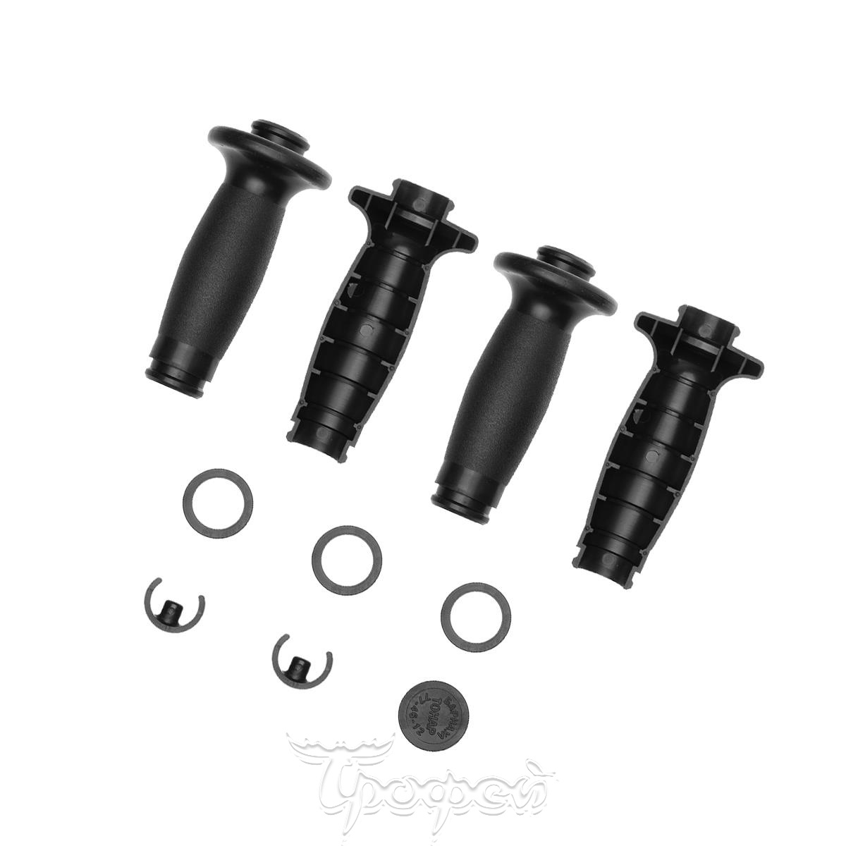 В ремкомплект для ручек ледобуров входят верхняя и нижняя пластиковая ручки ледобура, а также необходимые для их установки фиксаторы, втулки и колпачки.