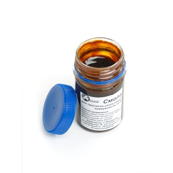 Смола применяется для пропитки скользящей поверхности деревянных промысловых и беговых лыж. Вес 70 грамм